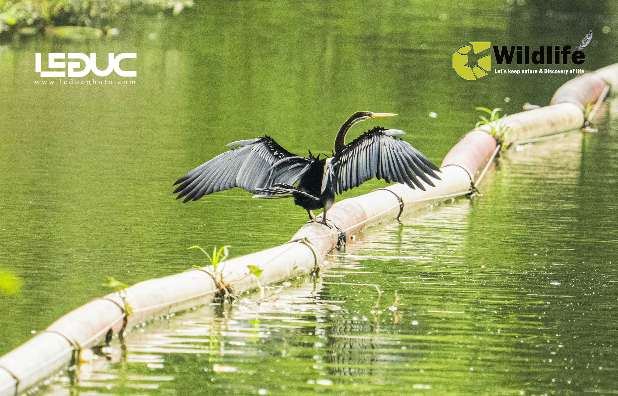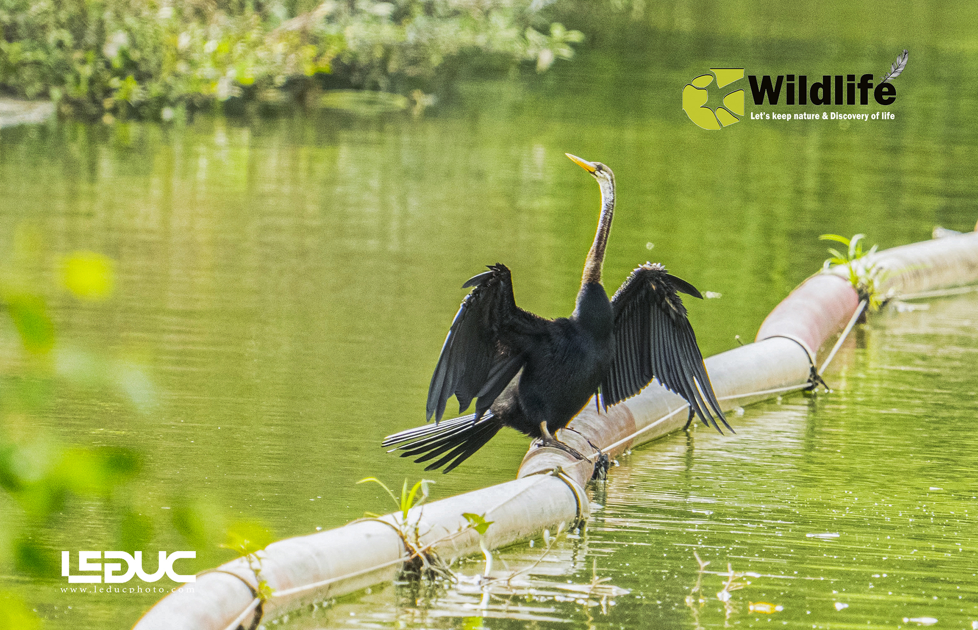 This bird has the characteristics of a long neck, straight and long beak, long tail and membranous legs, similar in shape to cormorants. Currently, the snake-necked bird is listed as endangered in the Vietnam Red Book. They often have the habit of drying their wings to dry their feathers after diving to catch fish, as shown in the picture.