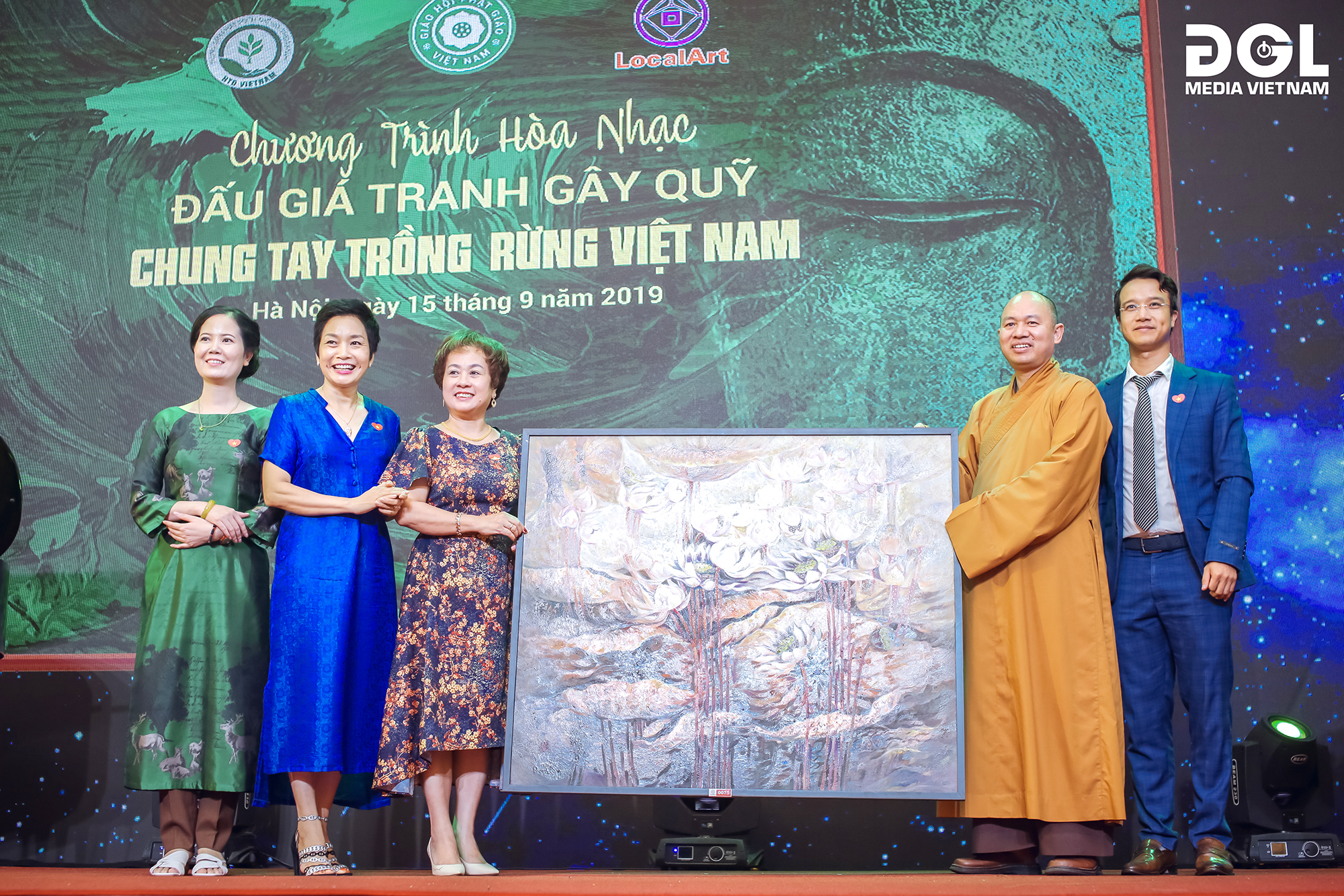 Tối 15-9, tại Hà Nội, Hội đồng Trị sự Giáo hội Phật giáo Việt Nam phối hợp với Trung tâm phát triển Thế giới thêm xanh tổ chức đêm hòa nhạc và bán đấu giá hơn 100 tác phẩm hội họa đặc sắc của các họa sĩ Việt Nam để gây quỹ chung tay trồng rừng.