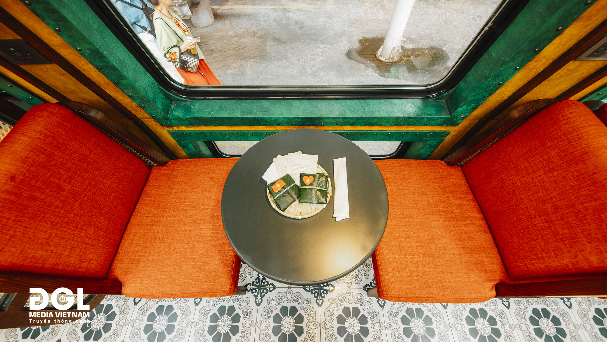 Bước vào toa Ô Cầu Dền, ta ngỡ như lạc vào một cuốn phim đen trắng về Hà Nội thời bao cấp. Sự mộc mạc, giản dị hiện hữu trong từng chi tiết, từ bức tường xi măng, ô gạch bông quen thuộc đến bộ bàn ghế đơn sơ. Đâu đó trong không gian, người ta có thể tưởng tượng ra tiếng rao quà vặt, tiếng trẻ con nô đùa ở một khu tập thể cũ.
