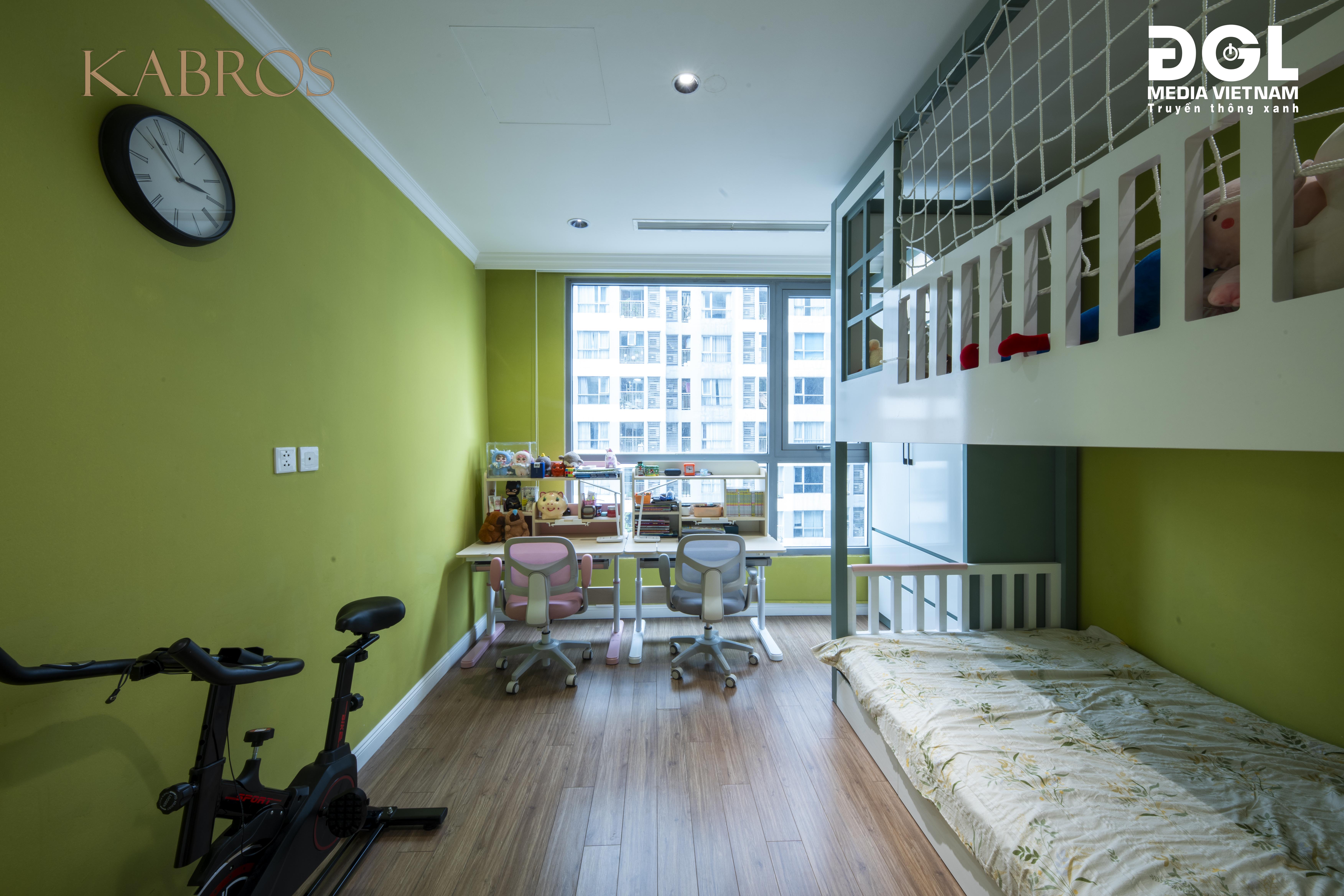 Phòng ngủ thì do có 3 cháu nhỏ, nên chúng tôi chuyển không gian học tập và nghỉ ngơi cho các cháu sang phong lớn hơn, còn bố mẹ sẽ ở phòng nhỏ hơn. - Không gian bếp trước đây có hệ thống bàn đảo ngăn cách giữa khu vực phòng khách và bếp, Kabros thiết kế bỏ phần đó đi để tạo không gian bếp rộng rãi hơn