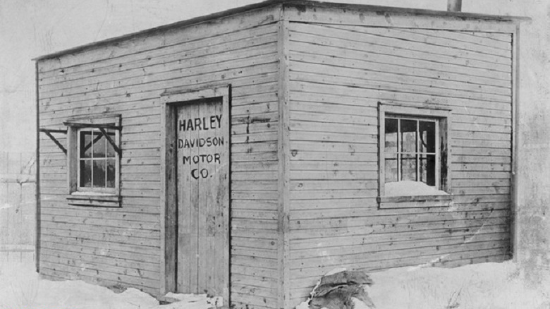 Năm 1901, William Harley – một anh chàng 21 tuổi – đã có kế hoạch táo bạo khi muốn tự mình chế tạo một động cơ có dung tích 116cc để lắp vào một chiếc xe đạp cũ. Sau khi lên ý tưởng William Harley và người bạn thân Arthur Davidson đã cùng nhau bắt tay vào dự án tại một nhà kho bằng gỗ nhỏ. Sau 1 khoản thời gian hì hục với những khó khăn, 2 chàng thanh niên đã cho ra đời một chiếc xe đạp máy với sự giúp đỡ của người anh là thợ máy tên Walker. Nhưng khi vận hành sản phẩm của mình các chàng trai cẩm thấy thất vọng vô cùng với nỗ lực đầu tiên này nên họ đã bỏ chiếc xe đi, chỉ giữ lại những kinh nghiệm quý báu từ mấy tháng qua và bắt đầu cho một kế hoạch mới. Qua nhiều lần thử nghiệm, sử dụngi những kinh nghiệm rút ra được trước đó, đến năm 1903, Harley và Davidson đã quyết định cùng nhau thành lập chính thức một công ty mang tên Harley-Davidson Motor Company với trụ sở và xưởng máy chính là căn nhà kho gỗ nhỏ của Davidson dùng chế tạo xe đạp điện trước đó với biển hiệu được viết tay trên một mảnh gỗ và gắn tạm lên cửa chính.