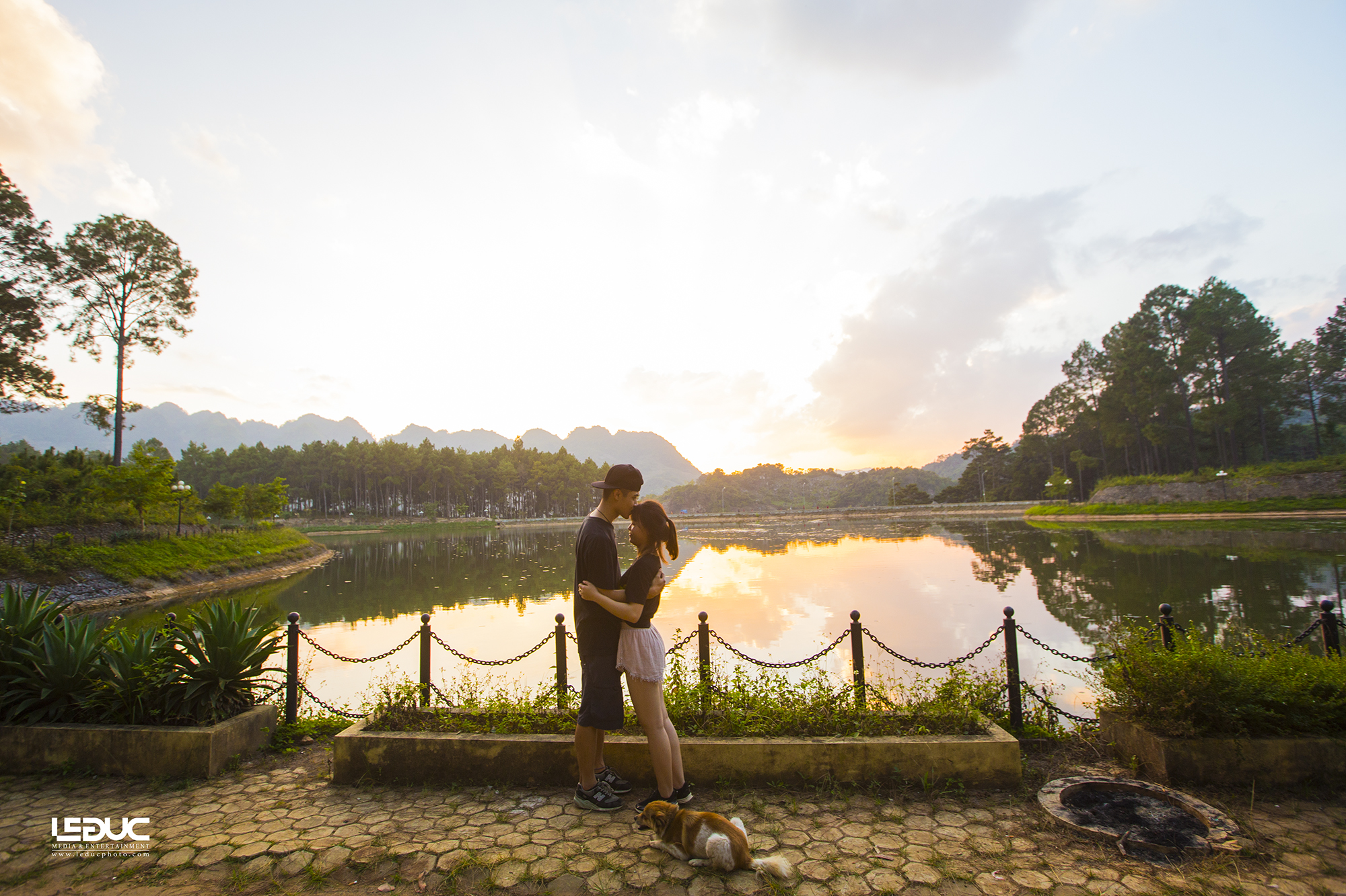 Một đôi bạn trẻ đang tình tứ bên hồ