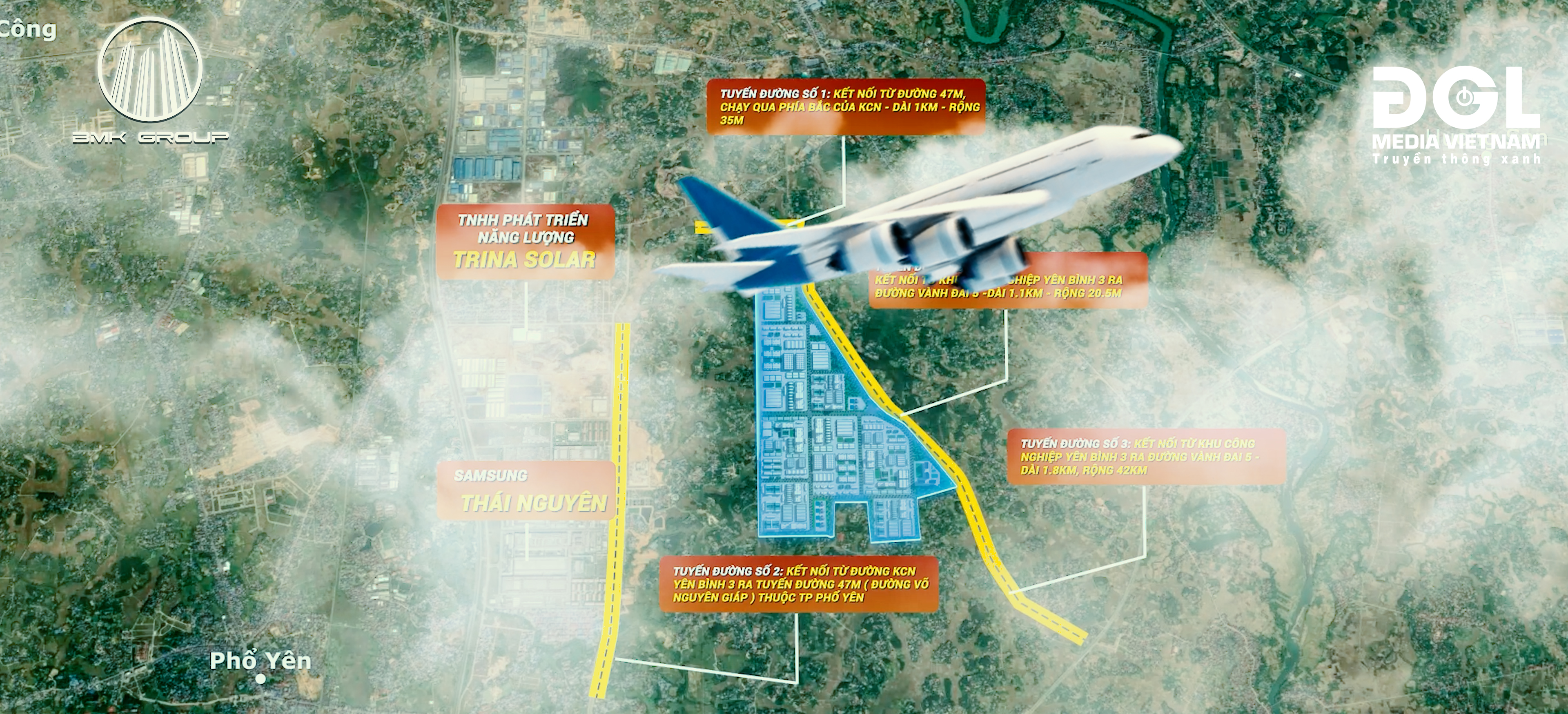 Tọa lạc liền kề các 'ông lớn' như Samsung, Sunny, Trina – KCN Yên Bình 3 với Chủ đầu tư là Công ty cổ phần Tập đoàn BMK không chỉ là dự án công nghiệp chiến lược của tỉnh Thái Nguyên, mà còn là dấu ấn đầu tư đậm nét của Tập đoàn BMK, với tiêu chí: Hiện thực cơ hội – Kiến tạo tương lai