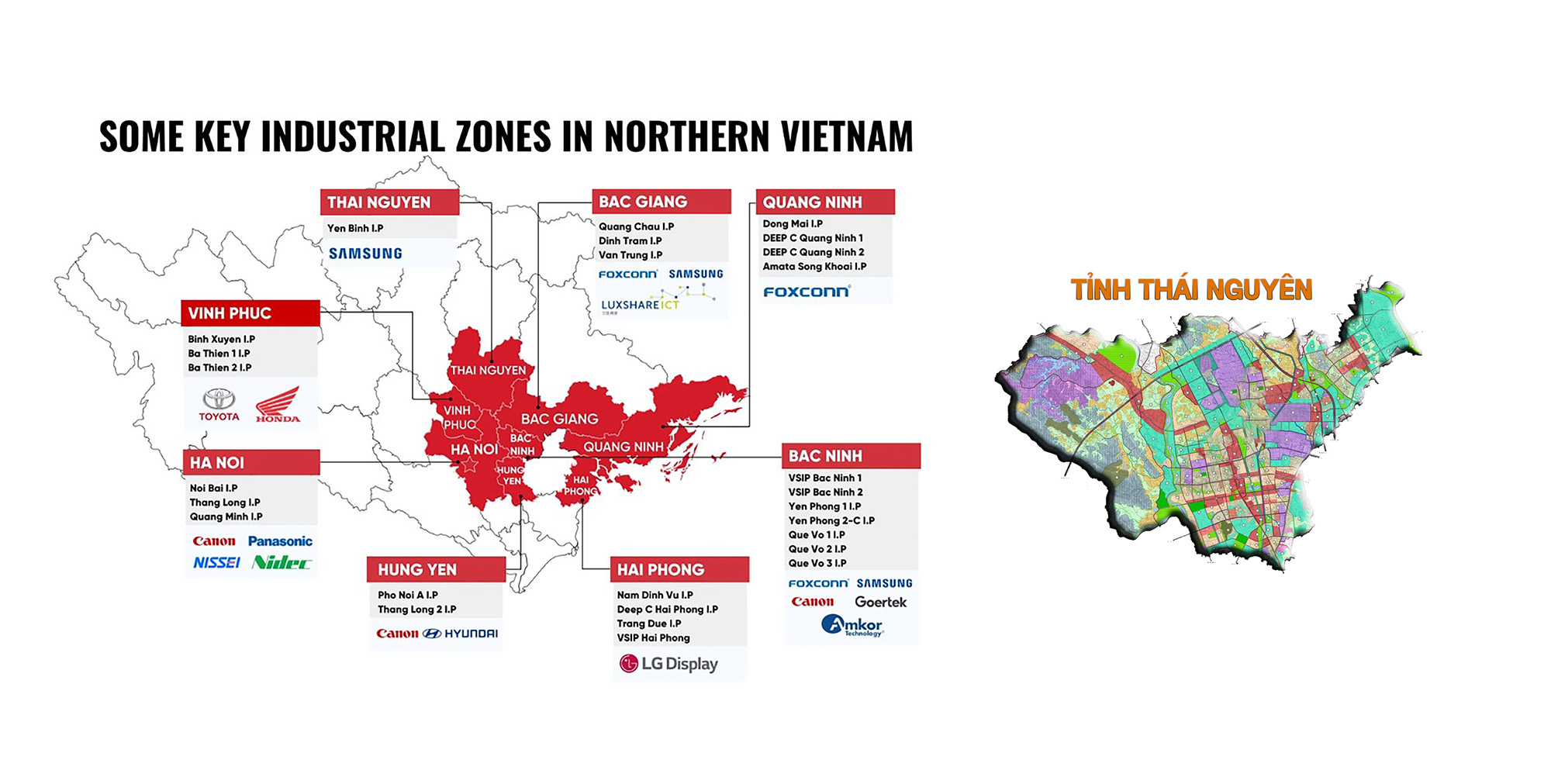 Trên bản đồ Công nghiệp toàn quốc, Thái Nguyên đã vươn mình thành thủ phủ công nghiệp hiện đại, thu hút những tên tuổi hàng đầu thế giới như: Samsung Electronic – đã đầu tư hơn 7 tỷ USD cho nhà máy sản xuất điện thoại lớn nhất Samsung toàn cầu