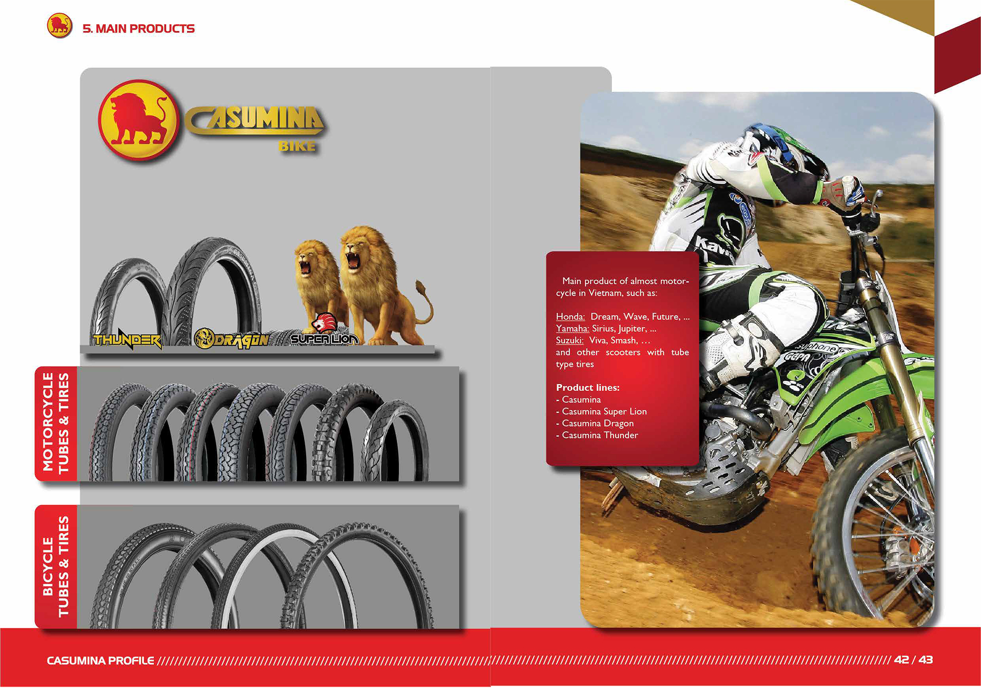 Trong suốt chặng đường phát triển, Casumina luôn thể hiện triết lý kinh doanh sâu sắc "Mang đến sự an toàn hiệu quả và thân thiện" và một tầm nhìn mới "Nhà Sản xuất lốp chất lượng toàn cầu". Casumina tự tin là một tập thể đoàn kết, vững mạnh với các phong trào đoàn thể sôi nổi và nhiều hoạt động vì cộng đồng có sức lan toả cao. Tự hào truyền thống lao động sáng tạo, tiếp nối thành công từ các thế hệ đi trước, tập thể Casumina vẫn đã và đang viết tiếp hành trình truyền lửa và khẳng định vị thế số 1 thị trường.