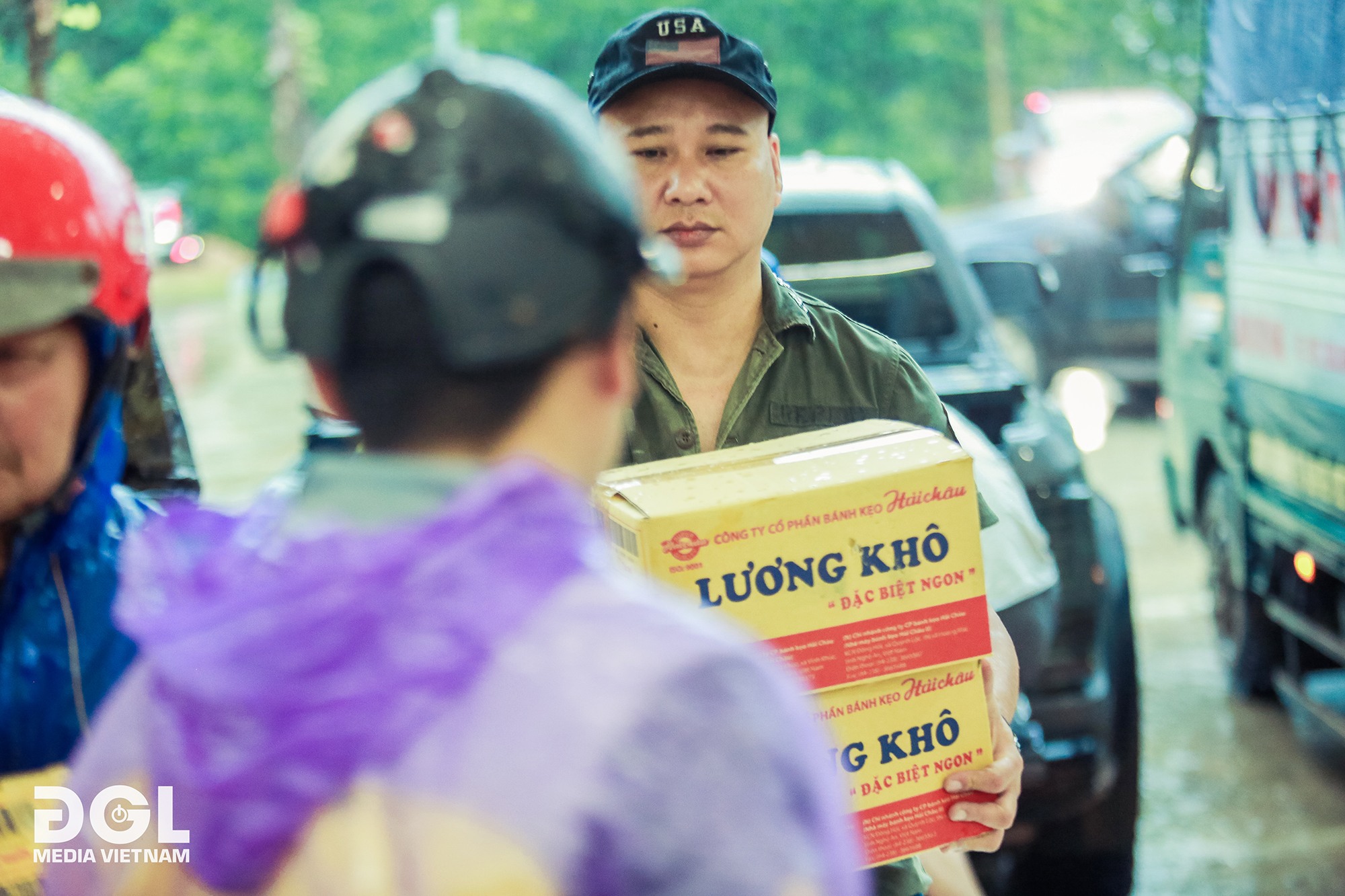 Trong chuyến đi ngày 19-10 tới Quảng Trị, đoàn chúng tôi có hơn 15 xe bán tải và một xe khách 45 chỗ tháo ghế, chứa đầy úp những nhu yếu phẩm cần thiết tới Người dân Quảng Trị, Trong đó đa phần là gạo, nước đóng chai, nước mắm, lương khô….