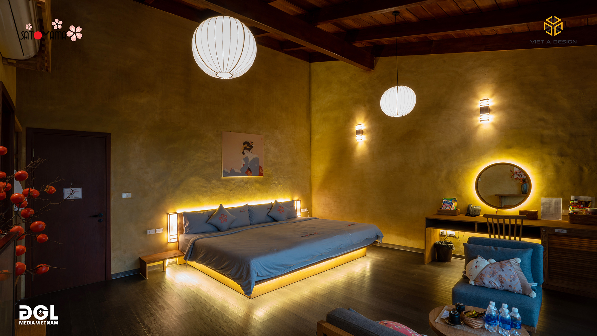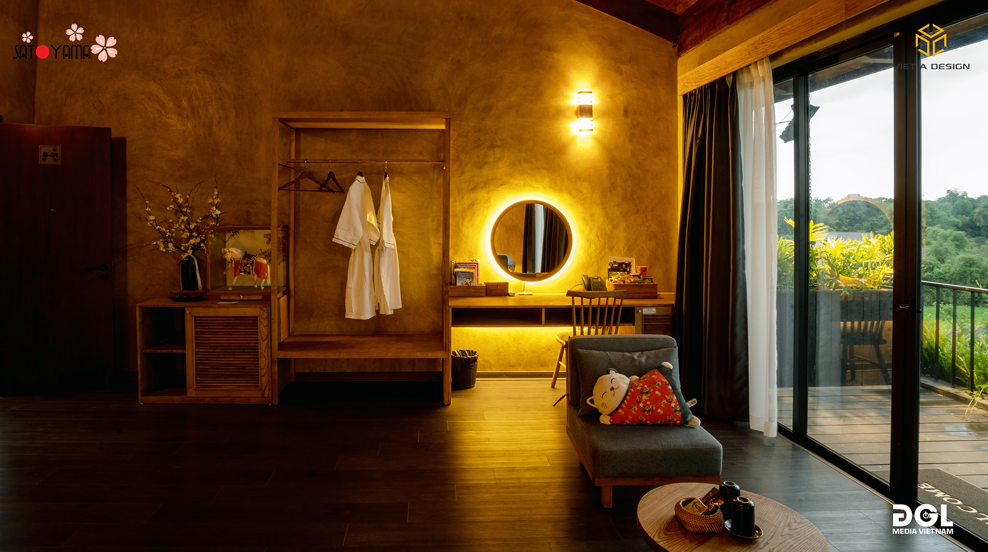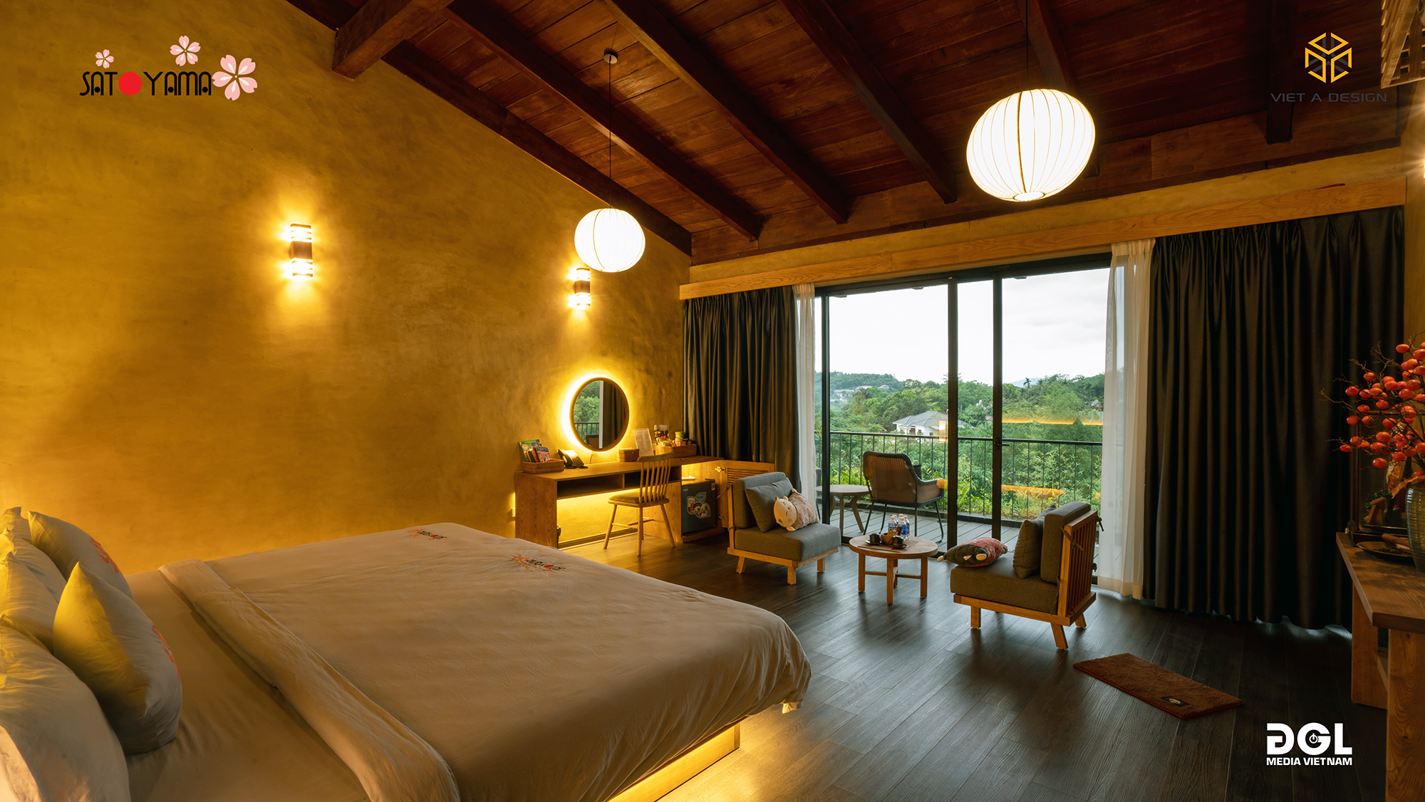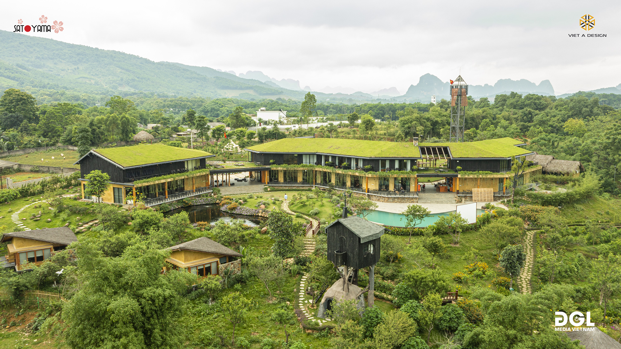 Nằm dưới chân dãy núi cao của huyện Lương Sơn, được hưởng trọn bầu không khí trong lành thì nơi đây rất phù hợp với các hoạt động hấp dẫn khác như thiền, yoga, spa, đạp xe quanh bản, bể bơi vô cực, xích đu… Ngoài các bungalow, phòng deluxe riêng tư, SATOYAMA VILLAGE còn có phòng đủ rộng để ngủ lên đến 20 người. SATOYAMA VILLAGE có bể onsen trong nhà và onsen ngoài trời, là loại hình tắm khoáng kiểu Nhật Bản mới được du nhập vào Việt Nam trong những năm gần đây.