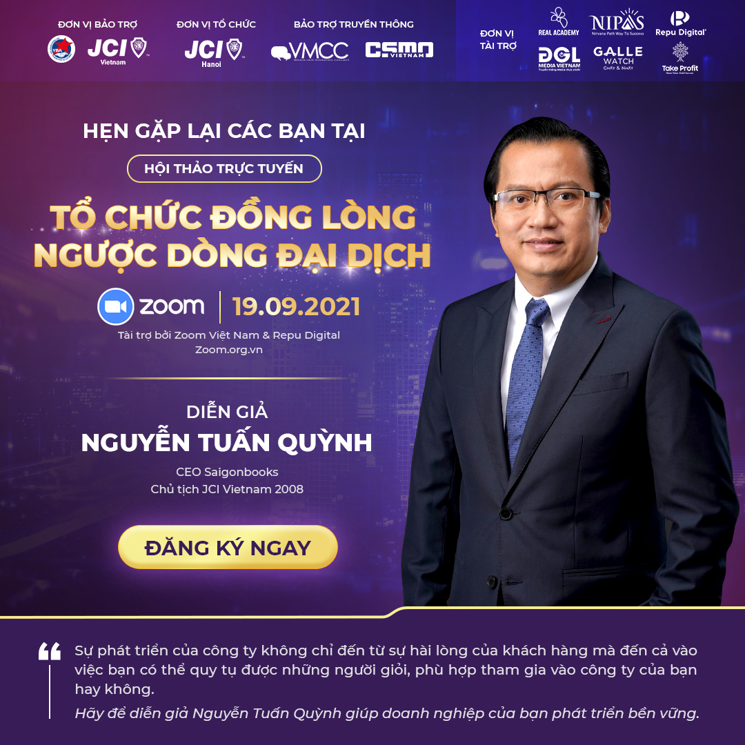 - Ông Nguyễn Tuấn Quỳnh – CEO Saigon Books, Chủ tịch JCI Vietnam 2008 với quyết tâm theo đuổi lĩnh vực khởi nghiệp nhiều khó khăn và cạnh tranh cao, nhằm mang lại hệ sinh thái tri thức hữu ích cho cộng đồng.