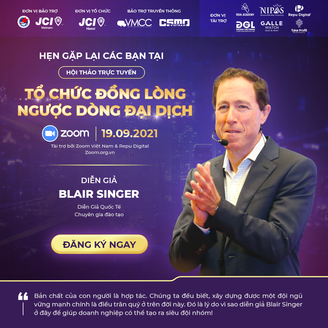 - Chuyên gia đào tạo quốc tế Blair Singer với 25 năm kinh nghiệm và là nhà tư vấn kinh doanh có ảnh hưởng trên nhiều quốc gia, là cố vấn cấp cao bộ sách “Cha Giàu” của Robert Kiyosaki.