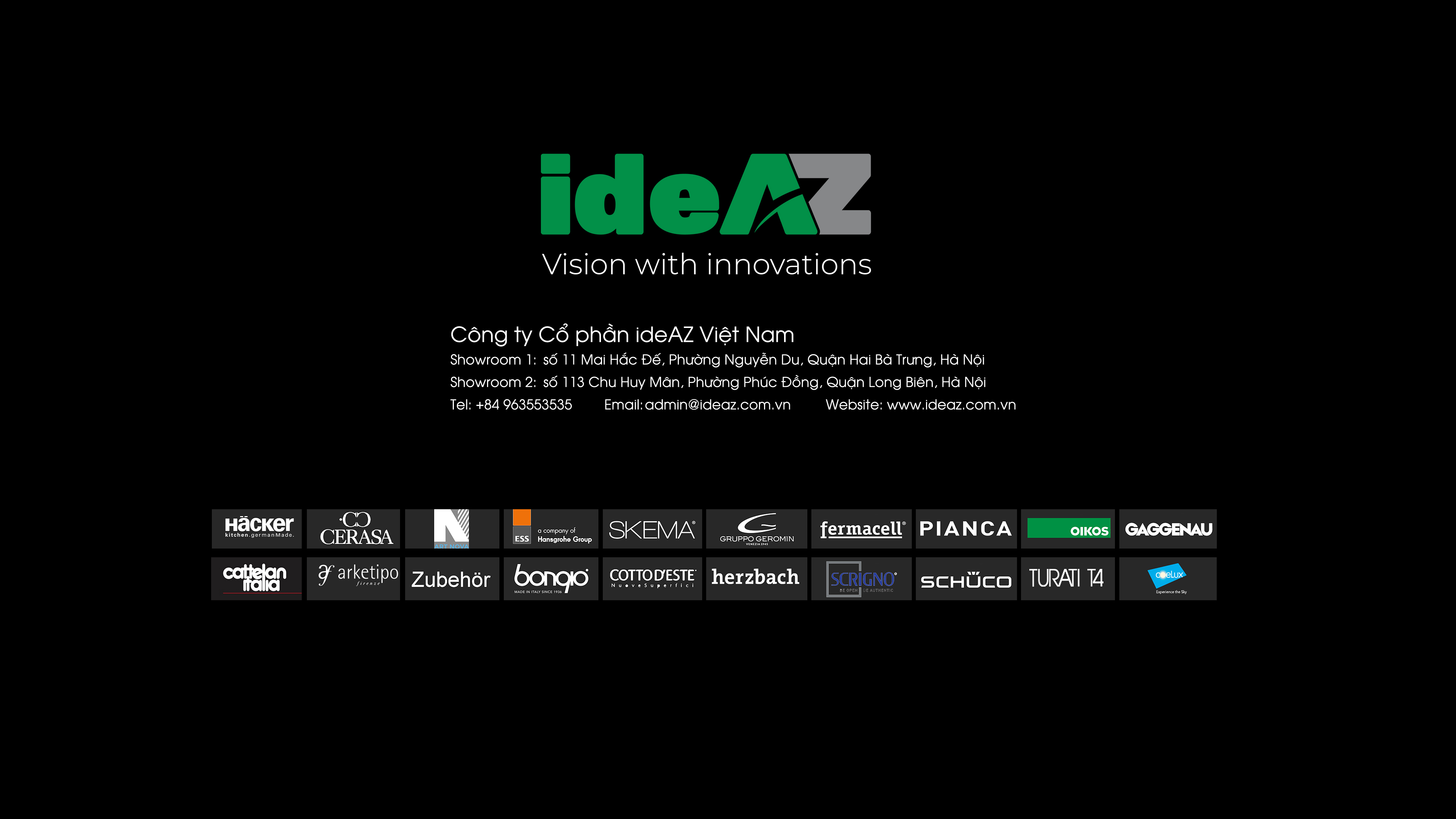 ideAZ được thành lập năm 2016, với các cổ đông đến từ Hà Lan, Việt Nam với hơn 25 năm kinh nghiệm trong ngành xây dựng, nội thất. Công ty phân phối độc quyền cho các thương hiệu nội thất, kỹ thuật, vật liệu hoàn thiện hàng đầu từ Italy, CHLB Đức, tự phát triển một số sản phẩm, giải pháp đặc thù. ideAZ có hệ thống văn phòng, showroom tại Hà Nội, TP.Hồ Chí Minh